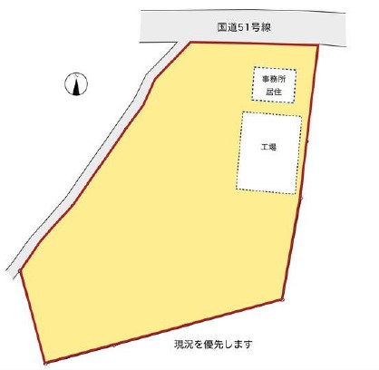 | 備考 | 2階1部3階建事務所付 国道51号線沿い トイレ エアコン 5t天井クレーン2基付 |