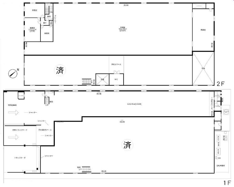 倉庫:1階158坪 2階273坪 事務所:37坪 |
