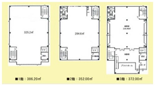 倉庫:1階116.82坪 2階106.48坪 3階112.53坪 |