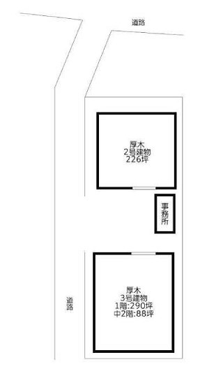 倉庫:2号棟226坪 3号1階290坪、中2階88坪 |