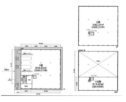 倉庫:1・2階各285.07坪、中2階96.55坪 |