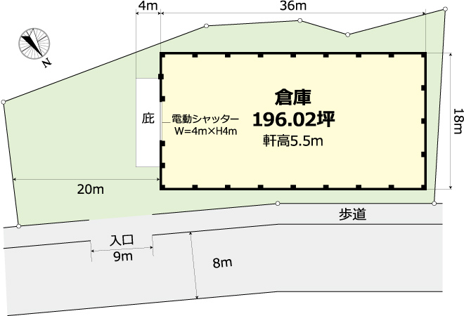 | 備考 | 電動シャッター(W=4m×H=4m)1ヶ所 大型車進入可 |