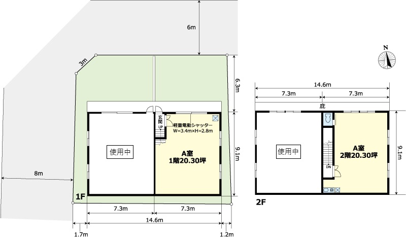 | 備考 | A室 天井高:1階3.2m 2階2.6m 軽量電動シャッター(W=3.4m×H=2.8m) トイレ |