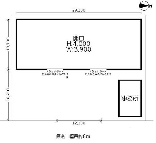 | 備考 | 別棟事務所33坪含む 大型車進入可 シャッター(W=4m×H=3.9m)2ヶ所 |