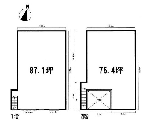 倉庫:1階87.10坪 2階75.40坪 |