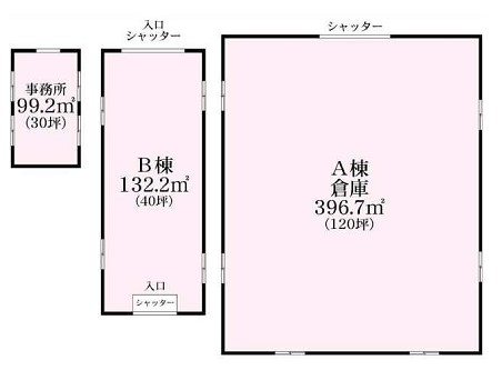 倉庫:A棟120坪 B棟40坪 事務所:30坪 |