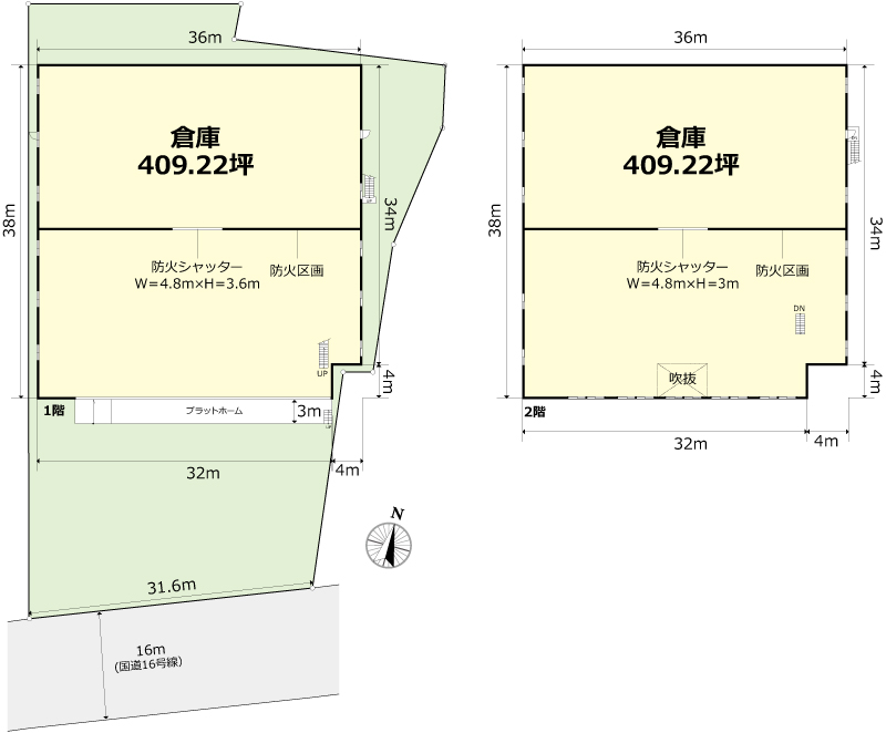 倉庫:1・2階各409.22坪 |