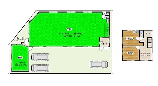 工場:35坪 別棟6.5坪 事務所:15坪 |